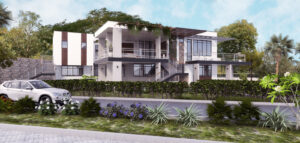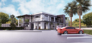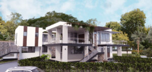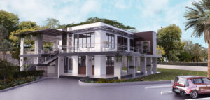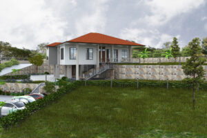 The design is situated on a hilltop